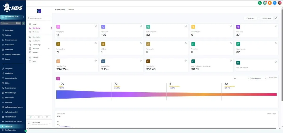 VoxAI360 es una plataforma de automatización de marketing y ventas que utiliza inteligencia artificial para optimizar la gestión de leads, mejorar la comunicación con clientes y aumentar las conversiones mediante flujos de trabajo personalizados.